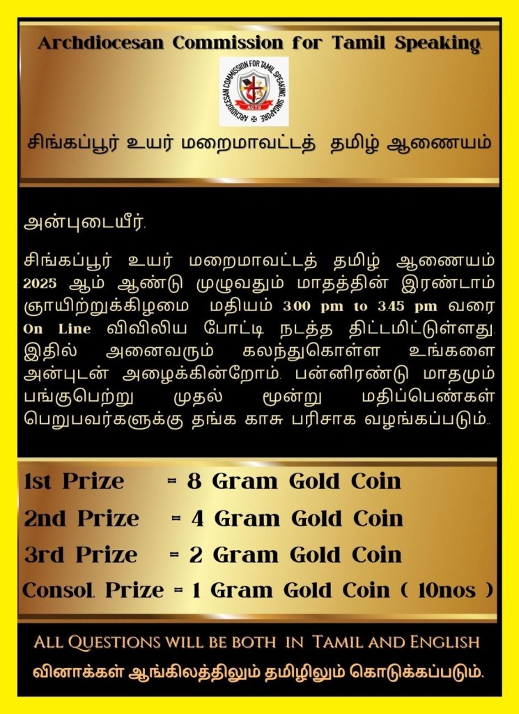 Singapore Archdiocese Tamil Mass Schedule-2025