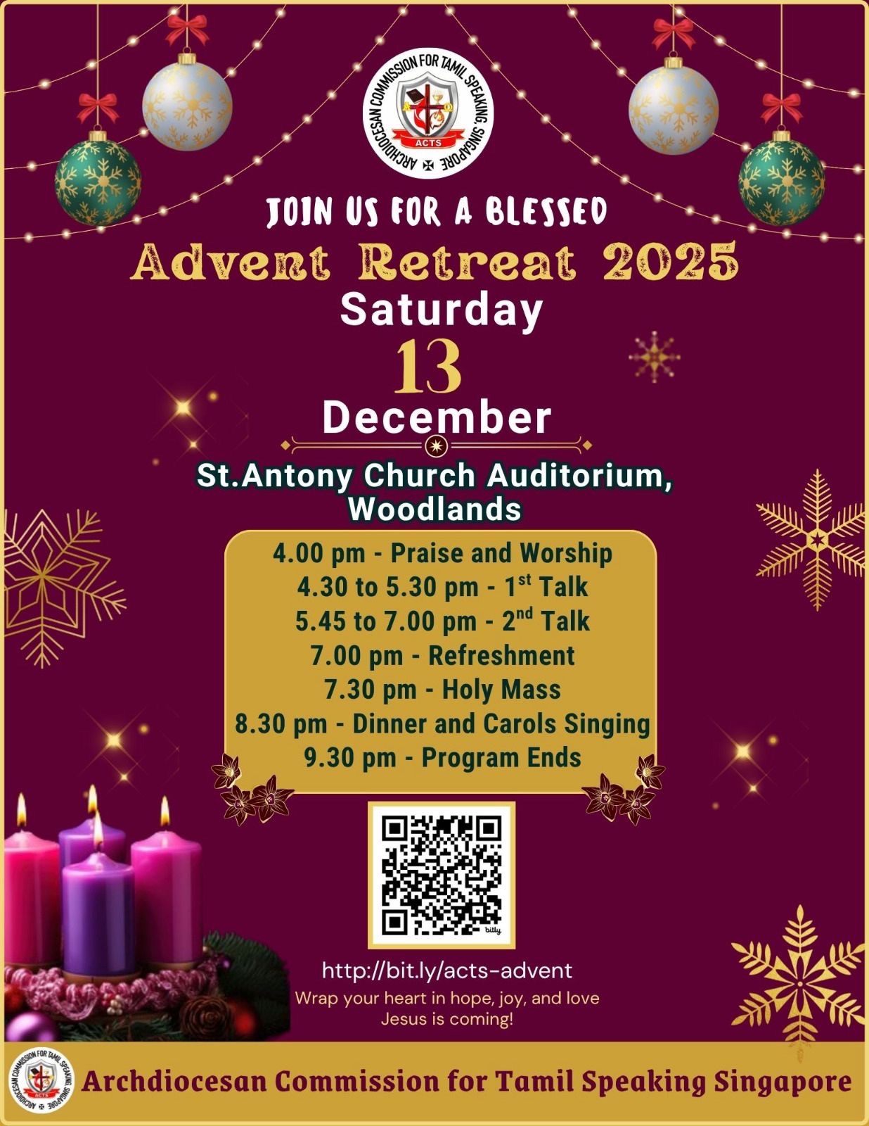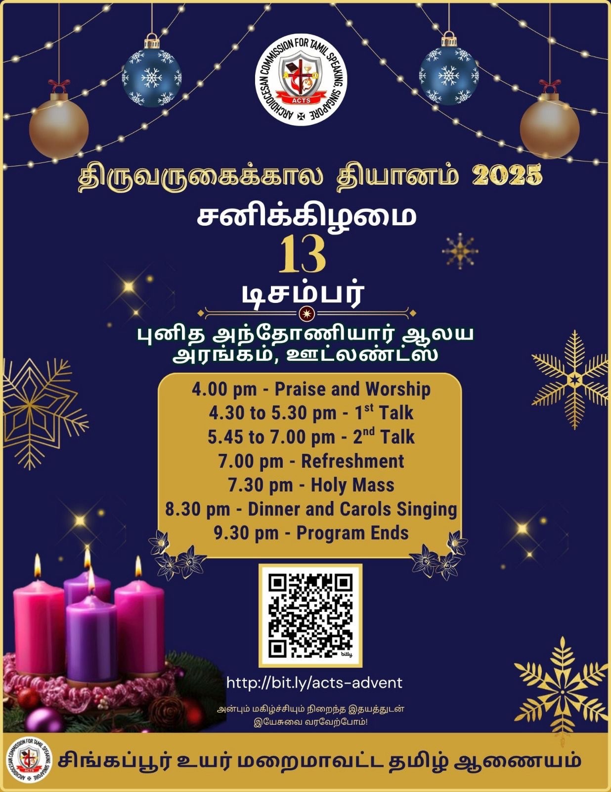 We are thrilled to welcome you to the official online home of the Archdiocesan Commission for Tamil Speaking (ACTS) in Singapore. Our mission is to serve and uplift the Tamil-speaking Catholic community, providing opportunities for spiritual growth, meaningful evangelization, and deepening one’s encounter with God.